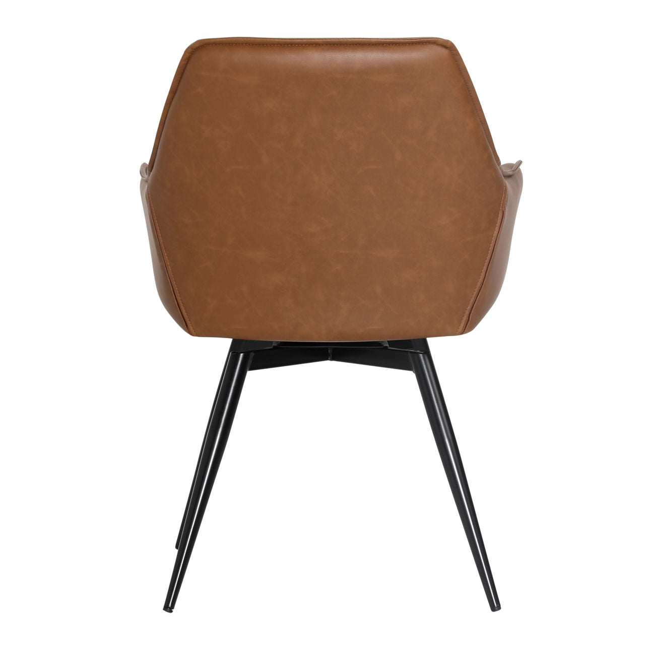 The Verity brings together clean lines, comfortable seating, and everyday versatility in a design that feels both modern and approachable. With its antique brown upholstery, black powder-coated legs, and rotating swivel function, this chair adds a refined industrial touch to dining spaces, breakfast nooks, and multi-use seating areas.